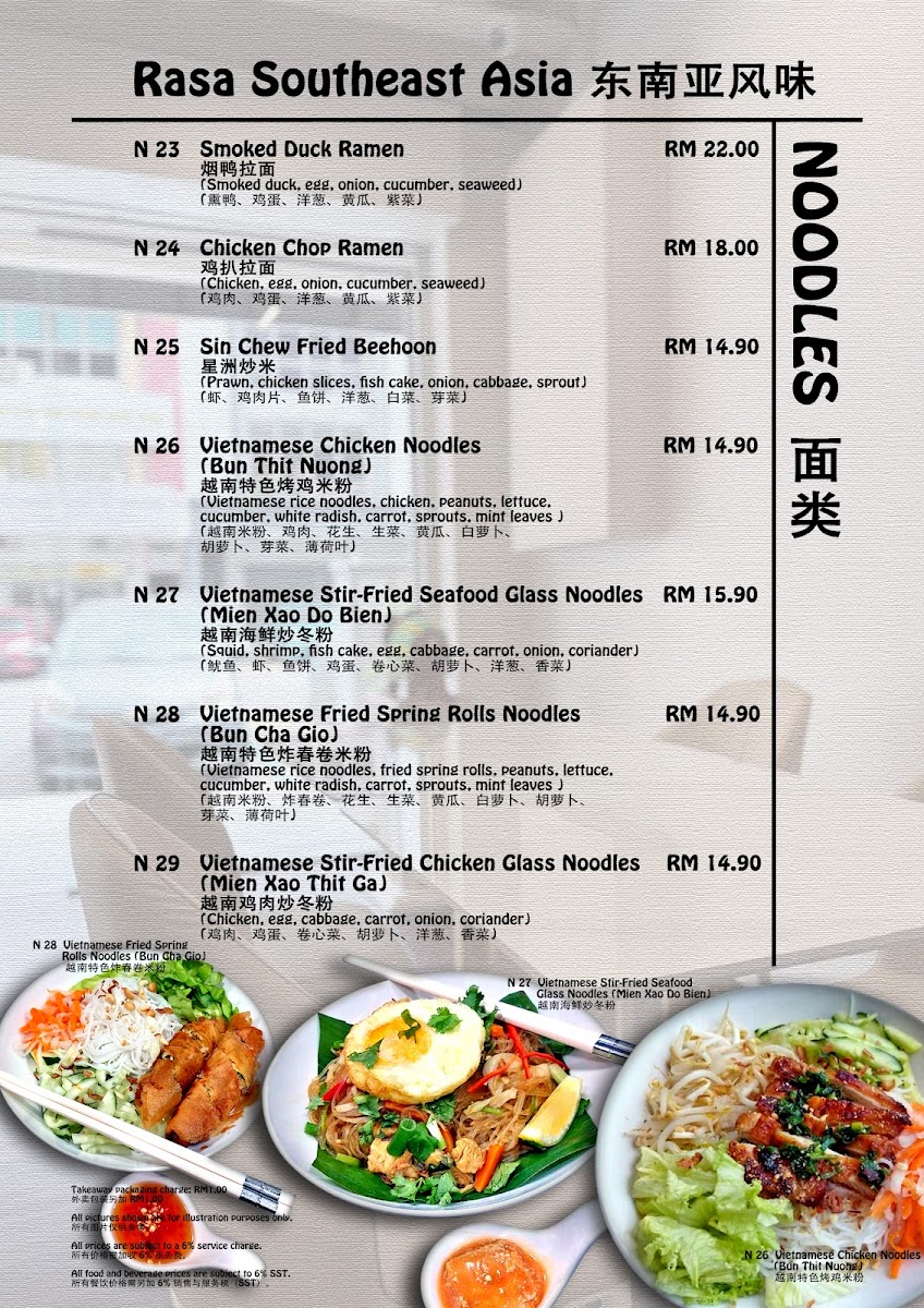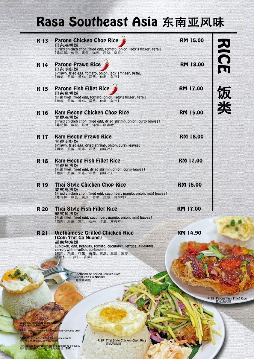 Welcome to RasaHomie Cafe, a hidden gem nestled in the vibrant heart of Subang Jaya. This inviting cafe offers an eclectic menu that embraces a fusion of flavors from Malaysian, Chinese, Vietnamese, and Thai cuisines, all while catering to vegetarian palates. Highlights include the delectable fried Chee Cheong Fun and the aromatic Vietnamese roast chicken rice, making it a must-visit for food enthusiasts.